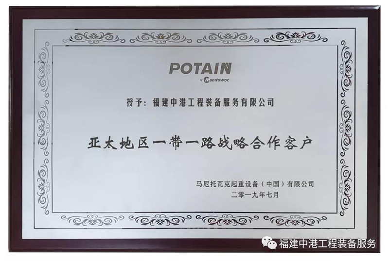 作為一家綜合性專業(yè)化工程裝備服務(wù)公司,中港公司立足“高起點(diǎn)建設(shè)、高質(zhì)量管理、高效能運(yùn)作、高標(biāo)準(zhǔn)服務(wù)”的高地平臺(tái),始終如一堅(jiān)持規(guī)范運(yùn)作、科學(xué)管理,憑借全方位的技術(shù)支持、強(qiáng)大的設(shè)備實(shí)力和安全可靠的安裝維修能力,贏得了顧客的忠誠(chéng)和美譽(yù)。先后榮獲“中聯(lián)重科五千萬級(jí)戰(zhàn)略合作伙伴”、“中建二局第一建筑工程有限公司AAA誠(chéng)信供方”、“第十三屆全國(guó)建筑機(jī)械租賃企業(yè)設(shè)備管理優(yōu)秀單位”、“中建二局第一建筑工程有限公司2015年度優(yōu)秀分供方”、“中建海峽建設(shè)發(fā)展有限公司2016年優(yōu)秀合作企業(yè)”、“中建三局集團(tuán)有限公司(粵)2017年度良好合作單位”、“2018年全國(guó)建筑施工機(jī)械租賃50強(qiáng)企業(yè)”、“廣東省建筑機(jī)械租賃、安裝企業(yè)信用評(píng)價(jià)B級(jí)”、“2020年中國(guó)塔機(jī)租賃50強(qiáng)”等。